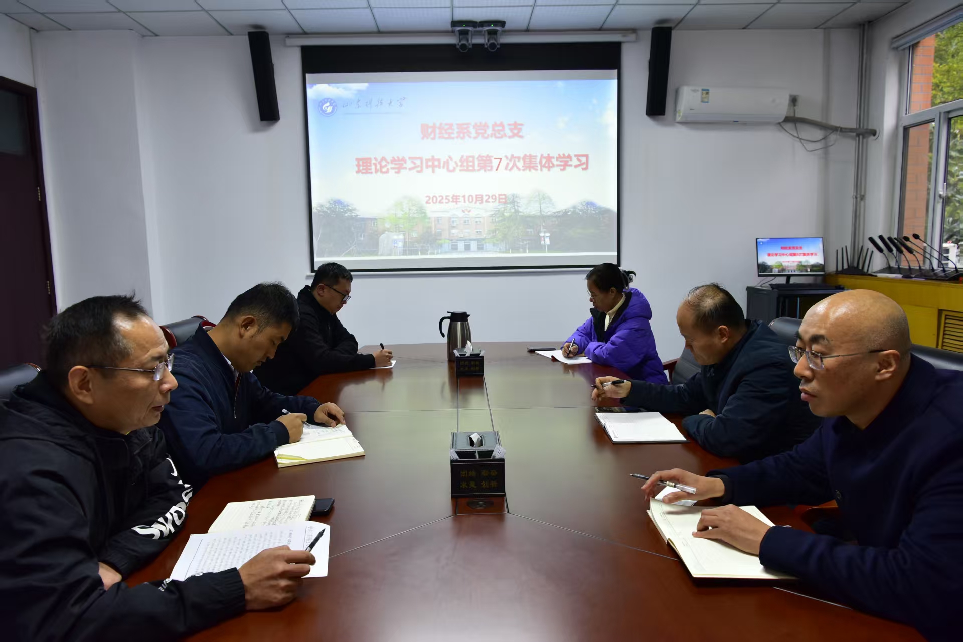10月29日,财经系党总支理论学习中心组在第一会议室召开第七次集体学习。党总支书记仉兴泉主持,中心组全体成员参加学习。