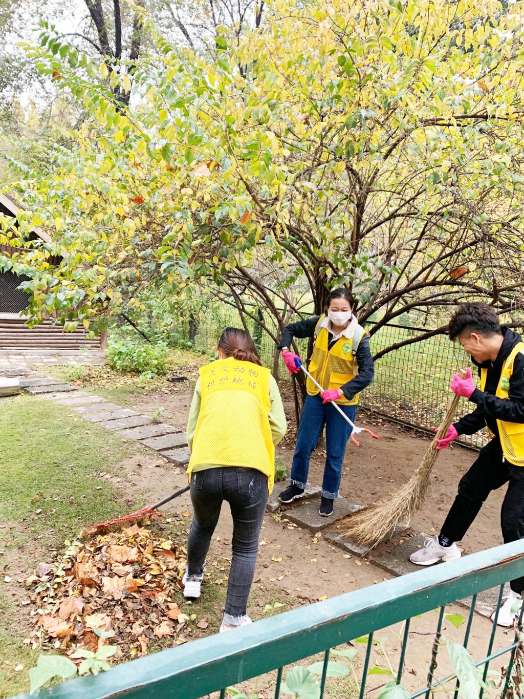 活动开始,志愿者们积极热情,兴致高昂,完成了计划中的清扫园舍等维护园内环境工作。接着,主动帮助动物园工作人员收集落叶,得到工作人员的赞赏。最后,全体青年志愿者在济南动物园大门处合影留念,本次活动圆满结束。