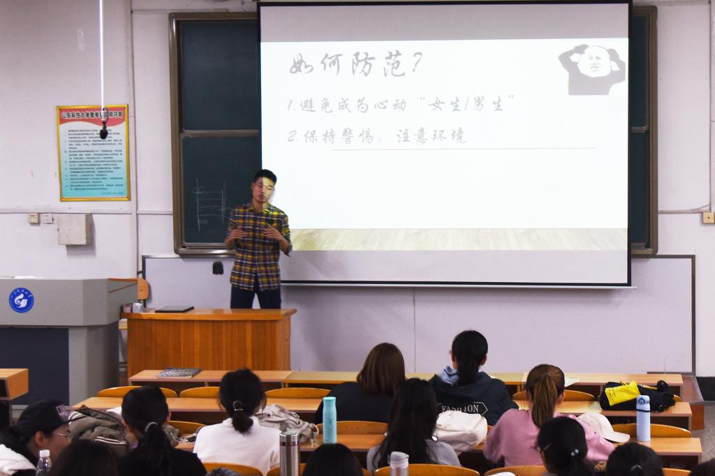 作者: 发布时间:2019-11-13为提高学生防范意识和自我保护能力,11月12日下午,财经系学生会心健联于1-302举办“仙女”自救指南讲座,国贸19-3张柄霖主讲。