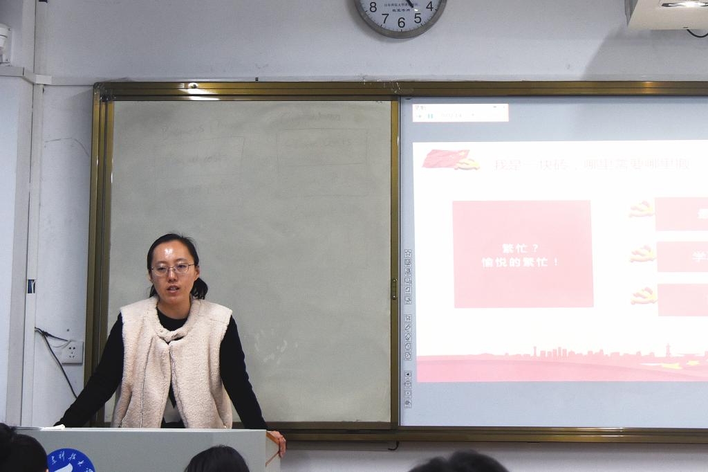 齐斯文指出,“不忘初心、牢记使命”专题教育活动的首要任务是坚定理想信念。她强调,作为青年学生要树立崇高的理想信念和价值追求,严守党的政治纪律,做到以信念、人格、实干立身;其次,青年学生要不断学习先进的价值理念,掌握实干本领,在为人民服务的历程中不断成长;另外,青年学生要恪尽职守,在日常生活和学生工作中严格要求自己,将主题教育做实并融入到平常的学习和生活当中。最后,齐斯文带领同学们回顾中国共产党诞生和发展的艰苦历程,号召同学们向党历史中的优秀先锋人物学习。