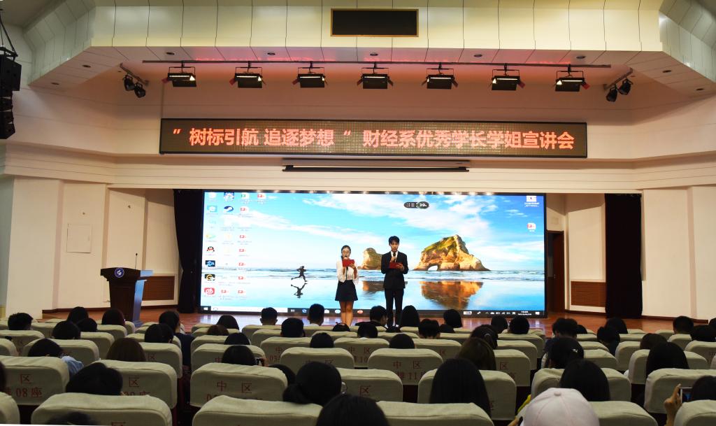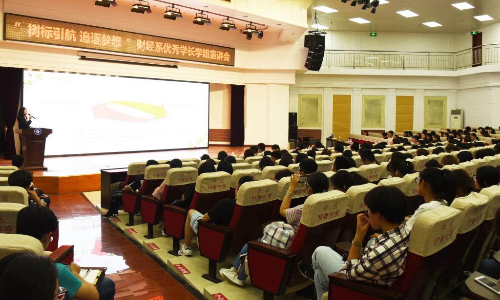 9月29日,由财经系学生会学习科技部主办的“树标引航,追逐梦想”——优秀学姐学长宣讲会在图书馆报告厅顺利举行,财经系2019级全体学生参加了本次活动。