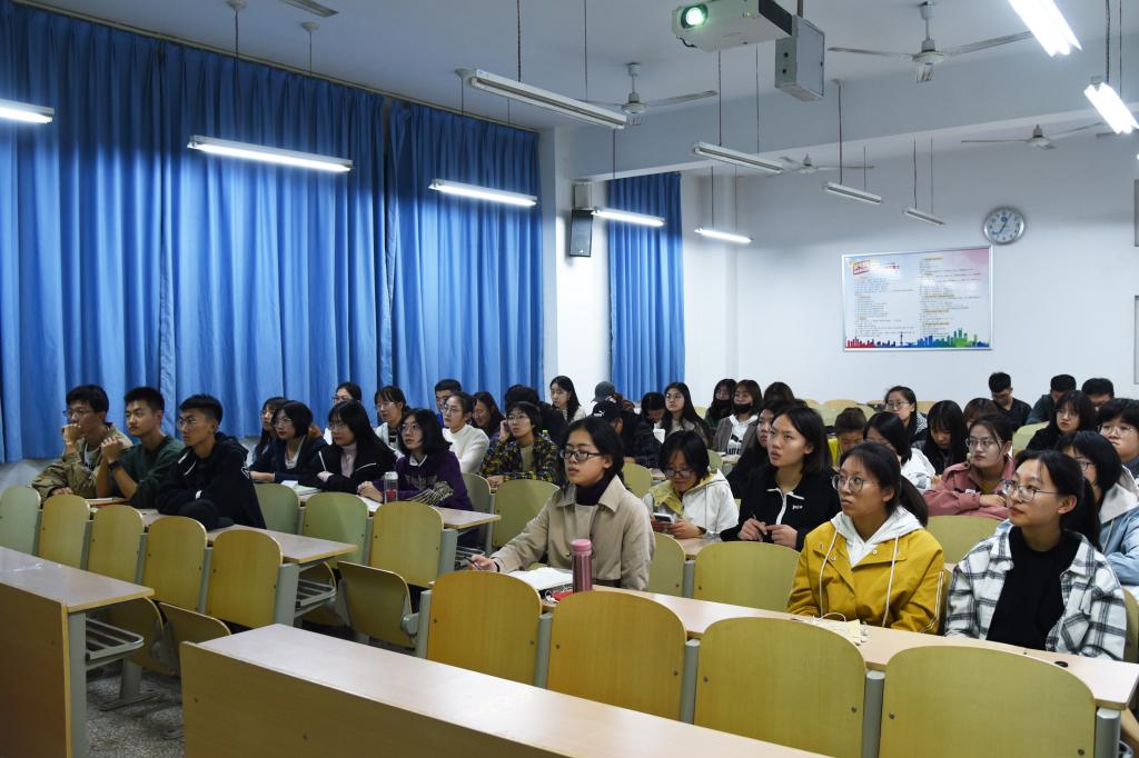左守志首先围绕校史沿革、校址变迁、学校建设、发展规划、校园风貌等方面,为在座学生介绍校史、校情及山科深刻的人文精神内涵。接着,他向学生介绍学校68年来的艰辛发展史,展现科大前辈们为建设科大、发展科大所付出的辛苦劳动及取得的优异成绩。“六十八年沧海桑田,科大之精神在岁月中不断历练而成,传承至今。”他强调,身为科大学生,身为财经系学子,应该牢记校史,以校为家、以校为荣,珍惜宝贵的学习时间和机会,做一个不辱时代使命的科大学子。