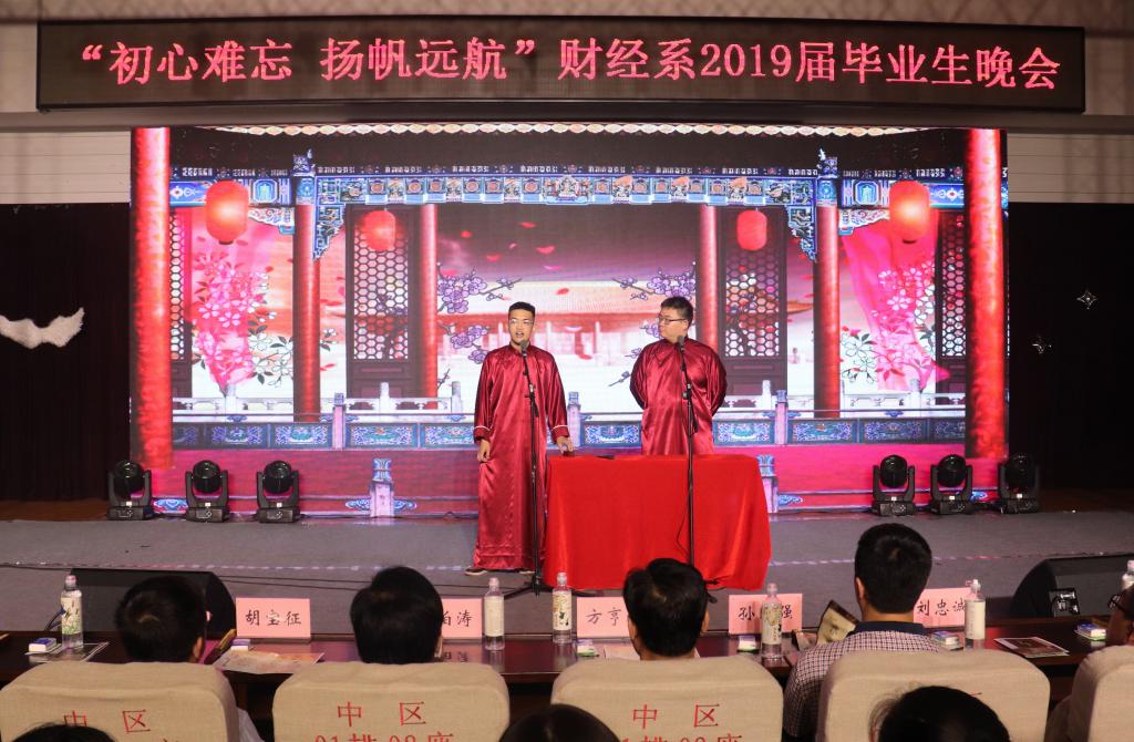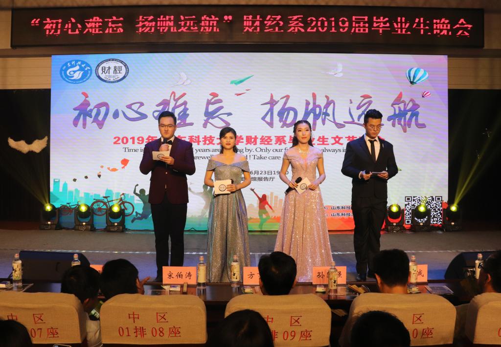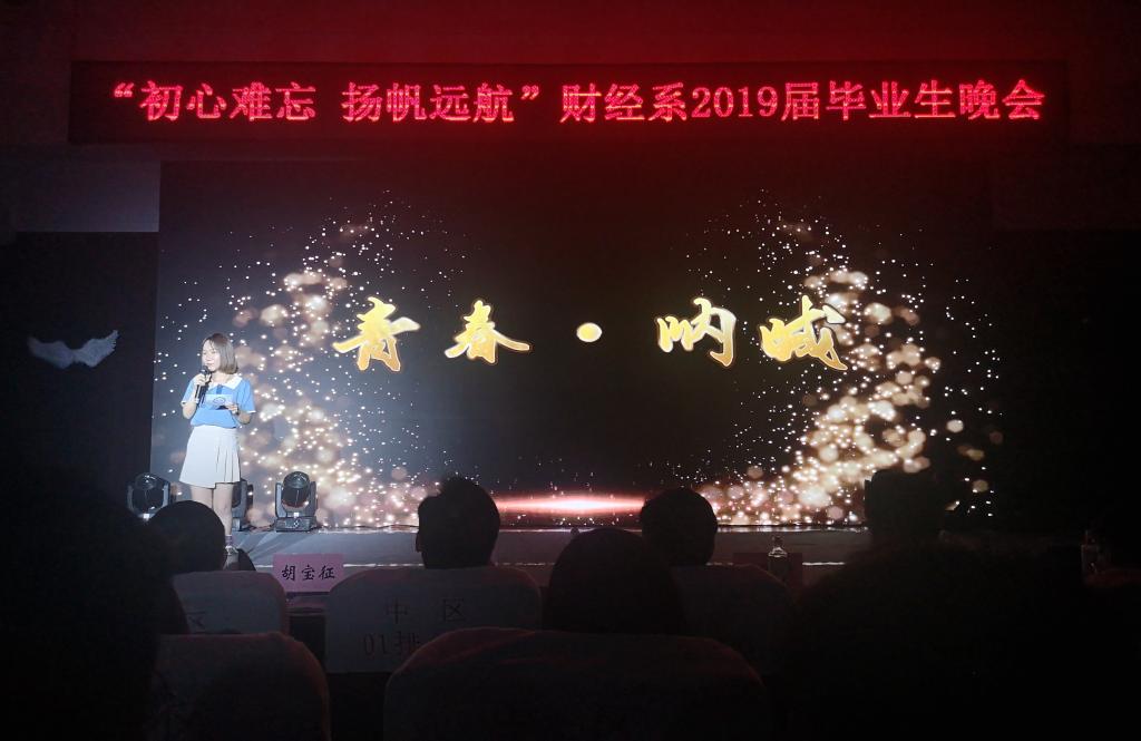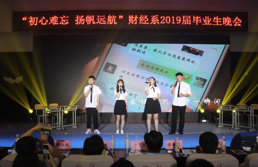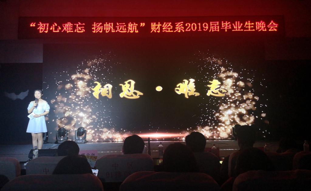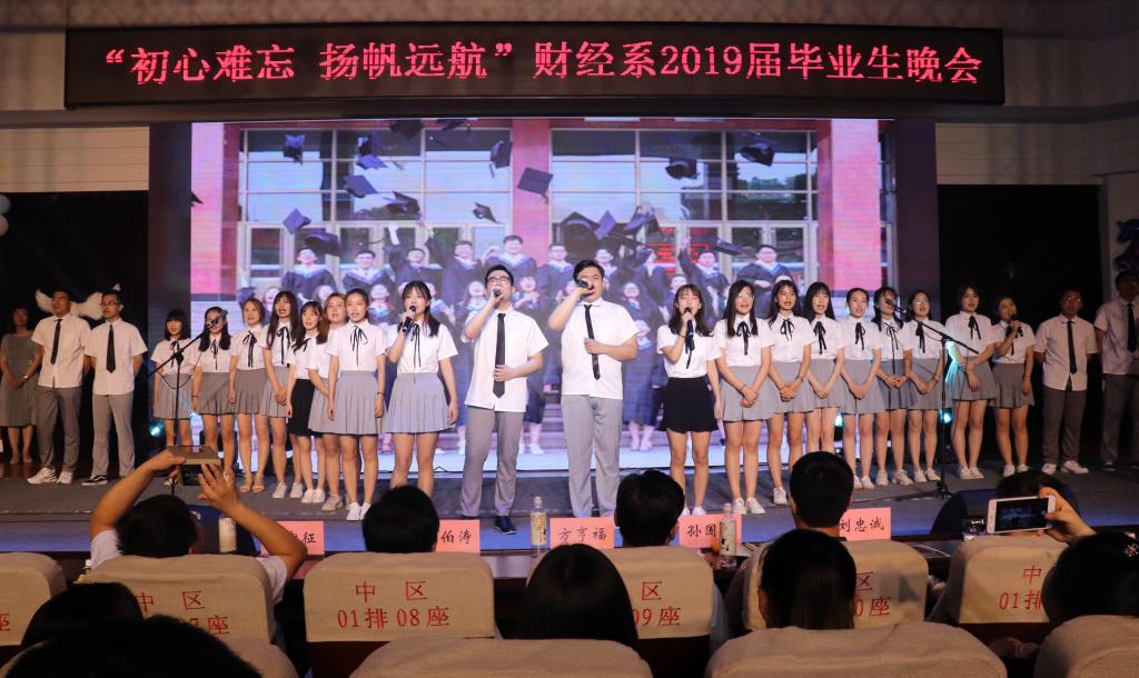 作者: 发布时间:2019-06-286月23日晚,财经系“初心难忘,扬帆远航”欢送2019届毕业生晚会在图书馆报告厅拉开帷幕。济南校区管委会副主任方亨福、财经系党总支书记宋伯涛、校区行政办公室主任孙国强、财经系党总支副书记胡宝征、财经系副主任刘忠诚、财经系团总支书袁玉磊、财经系辅导员与专业课老师们到场,与众多学子一同欢送毕业生。