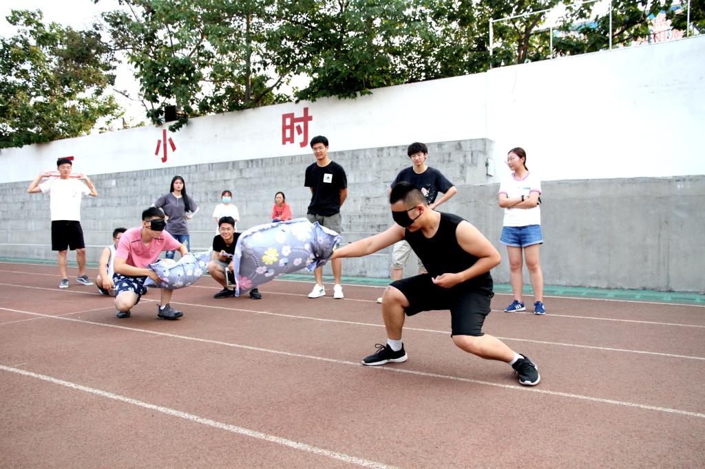 本次趣味运动会包括三个项目:手脚并用过河接力、投篮魔力转圈圈、蒙眼枕头大战。手脚并用过河接力每组两位队员先后根据图片指示通关;投篮魔力转圈圈按投进篮筐个数记分,每位队员限时两分钟;蒙眼枕头大战的受击者将离开场地,场地内人多的小组晋级。比赛过程中,各组队员互相配合、争分夺秒,场面活跃热烈。最终,姚家桢、张渌涵队获得第一名,刘宇、杜凯队获得第二名,王媛媛、蔡迎春队获得第三名。
