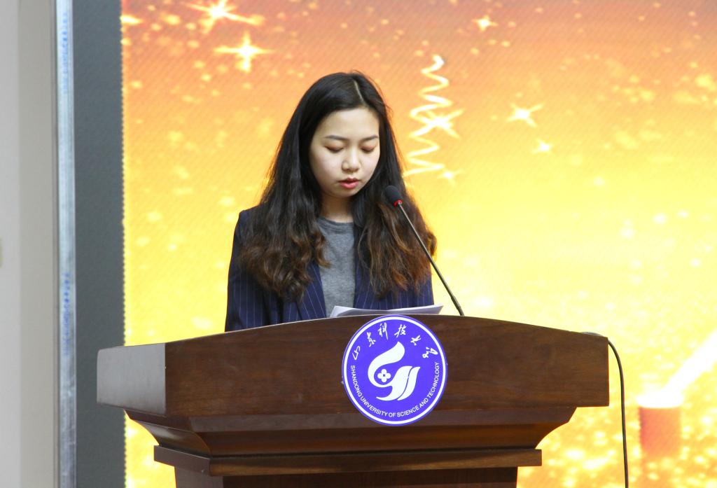 学生代表张梦瑶发言,她代表2016级金融教改班,真切表达了对学校和领导老师们的感谢。她谈到,现在的青春是用来奋斗的,将来的青春是用来回忆的,并将自己积累的宝贵经验传授给在座学生,以亲身经历激励他们不忘初心,继续拼搏。