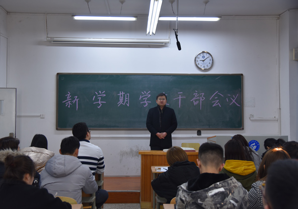 胡宝征总结了财经系过去一年学生工作取得的成绩,分析了学生日常工作、主题教育、学风建设、校园文化活动、朋辈教育等方面存在的问题和不足,明确了本学期学团工作的重点目标。他指出,2019年是关键的一年,要求全体学生干部在新学期应有新成长,要加强认识,坚定信念,注重品德修养塑造;要勤于学习,提升创新能力和实践能力;要明确目标,提高工作执行力和团队协作力;要把握重点,做到真抓实干见成效。袁玉磊详细布置了开学后主要工作安排,要求各班级、团支部、学生组织认真学习学校和校区学生工作要点并制定本部门新学期工作计划,要求大家提高思想认识,抓准自我定位,紧跟新时代步伐,落实目标,踏踏实实做好各项工作。