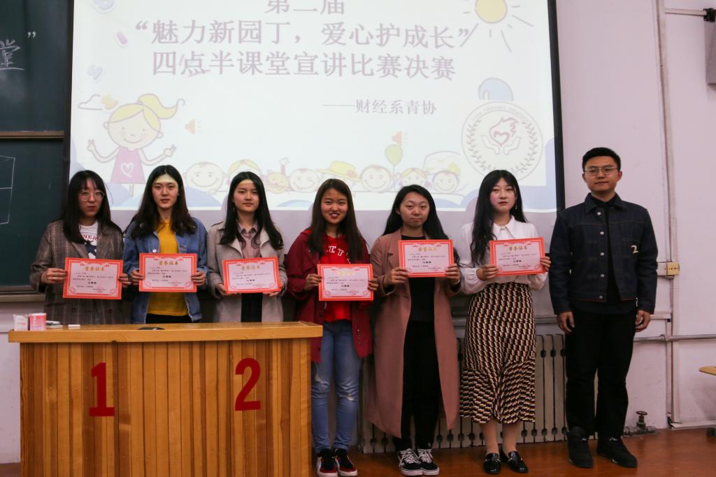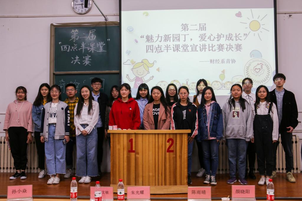 作者:文编:郭逸群 摄影:鞠孝刚 发布时间:2019-03-28为了助力青少年健康成长成才,财经系青协自2017年开展“四点半”课堂活动以来,赢得了服务对象小学师生的一致好评。为了进一步可持续化推进活动,使活动更加贴近小学生学习与生活,3月26日,财经系青协于1-103举办第二届“四点半课堂”之科学小课堂宣讲比赛总决赛。