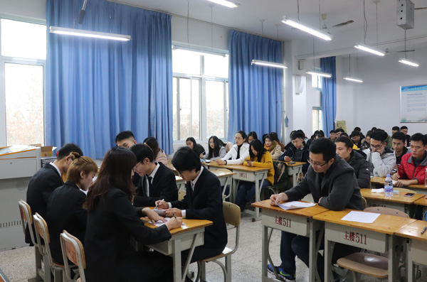 无领导小组演示由李晓斌主持。主持人宣读规则并公布问题后,由2016级学生刘雨杭、李本正、董亚妮、崔梓贤、李天成、马凯6位同学进行演示。六位同学围绕议题展开了激烈的讨论,半个小时后,由代表总结发言,宣布小组讨论的结果。最后,袁玉磊针对六位同学的无领导小组讨论进行点评,要求同学们代入角色、多加思考、深刻解读问题,也表达出对本次讨论结果的高度认可。