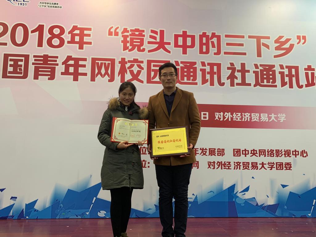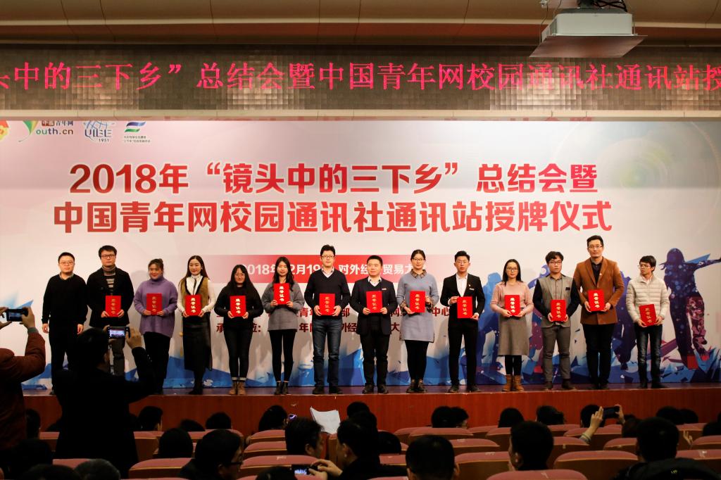 作者: 发布时间:2018-12-2212月19日,由团中央学校部、团中央青年发展部、团中央网络影视中心主办,中国青年网承办的2018年全国大中专学生暑期“三下乡”社会实践“镜头中的三下乡”优秀成果颁奖典礼在北京对外经贸大学举办。清华大学、浙江大学、南京大学等300余所高校获奖。财经系“东方印象”调研团获得“优秀摄影奖”。学校也成为中国青年网“校园通讯社通讯站”。