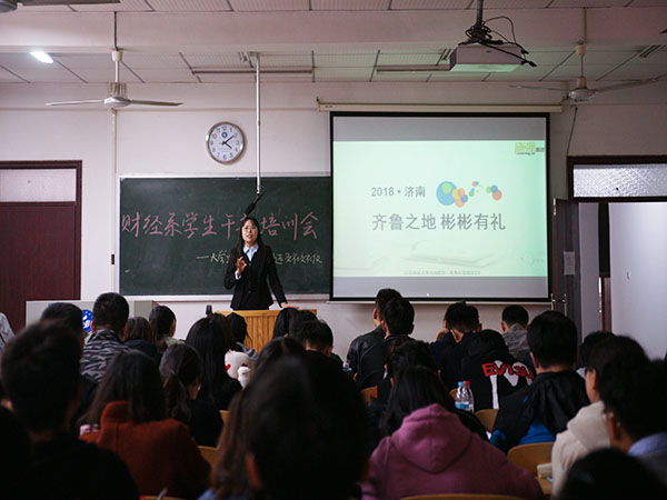 作者: 发布时间:2018-11-16 为进一步加强校园文明,提升大学生文明礼仪素质,11月14日下午,财经系于3-223开展以《大学生文明形象塑造及社交礼仪》为主题的学生干部培训讲座。特邀施强集团商学院教研部负责人程亚军担任讲师,财经系团总支书记袁玉磊、财经系全体主要学生干部参加培训。