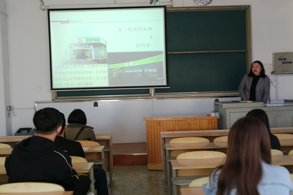 10月19日上午,山东统一银座商业有限公司于1-602举办招聘宣讲会,统一银座的王经理、财经系网融职业发展辅导员王红红主持宣讲会。首先,王经理介绍了银座的公司性质、发展状况和工作环境等,使同学们深入了解企业。然后,王经理讲述本次招聘需求、薪资待遇和晋升渠道,鼓励有志向的同学积极报名。最后,王经理和同学们进行互动,解疑答惑,作为一个资深HR对同学们就业提供指导意见。
